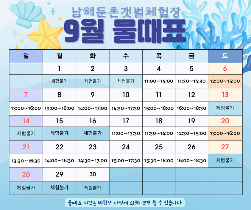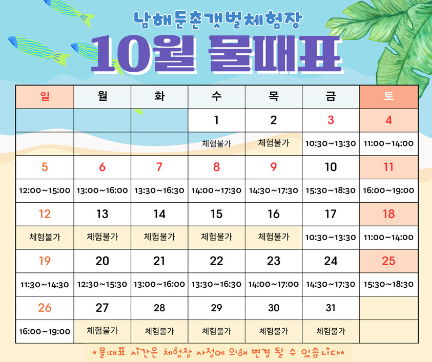 물때표 시간은 체험장 사정에 의해 변경될 수 있습니다.